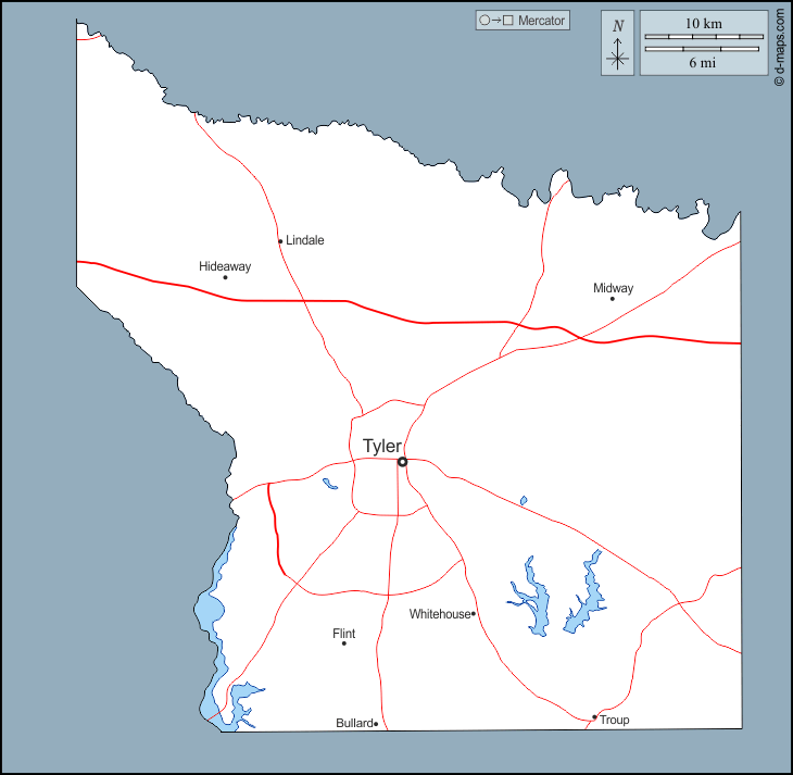 d-maps > Etats-Unis d'Amérique (USA) > Texas > Comté de Smith > contours, hydrographie, principales villes, routes, noms