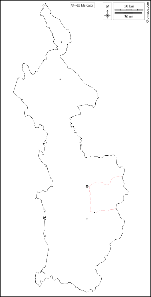 d-maps > Amériques > Colombie > Département du Chocó > contours, principales villes, routes, blanc