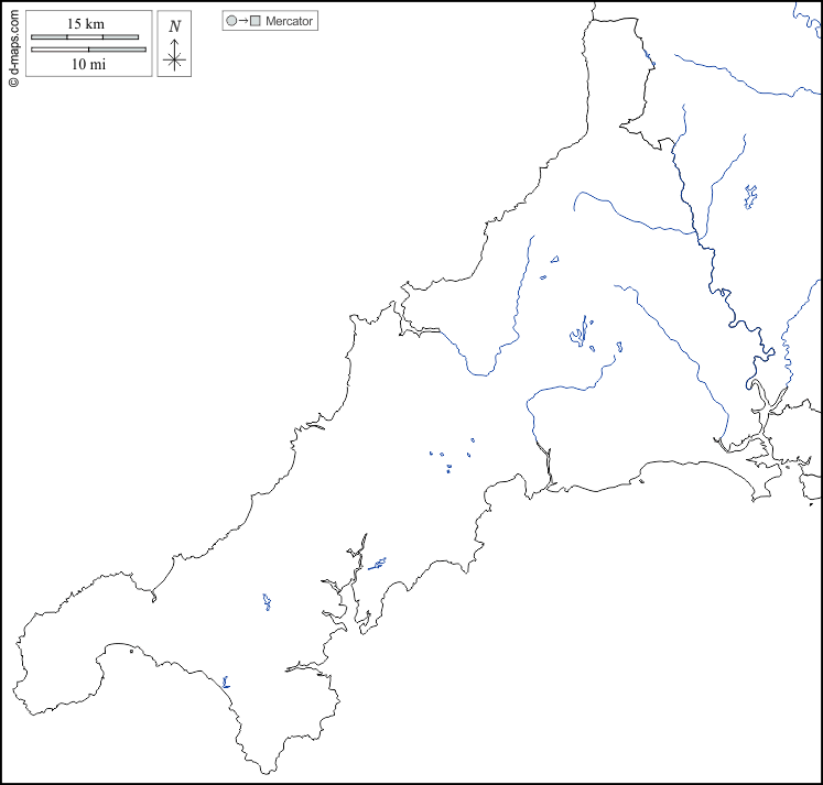 d-maps > Europe > Royaume Uni > Cornwall > frontières, hydrographie, blanc