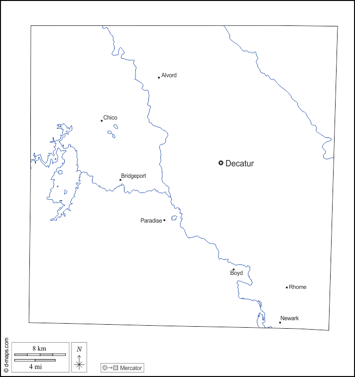 d-maps > संयुक्त राज्य > टेक्सास > समझदार काउंटी > बाह्यरेखा, जल-सर्वेक्षण, मुख्य शहरों, नाम, सफेद