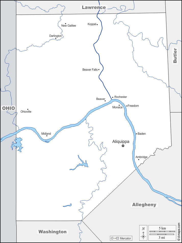 d-maps > संयुक्त राज्य > पेंसिल्वेनिया > बेवर काउंटी > सीमाओं, जल-सर्वेक्षण, मुख्य शहरों, नाम