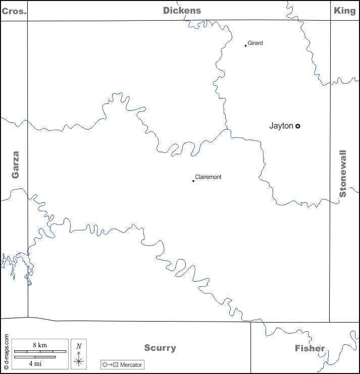 d-maps > संयुक्त राज्य > टेक्सास > केंट काउंटी > सीमाओं, जल-सर्वेक्षण, मुख्य शहरों, नाम, सफेद