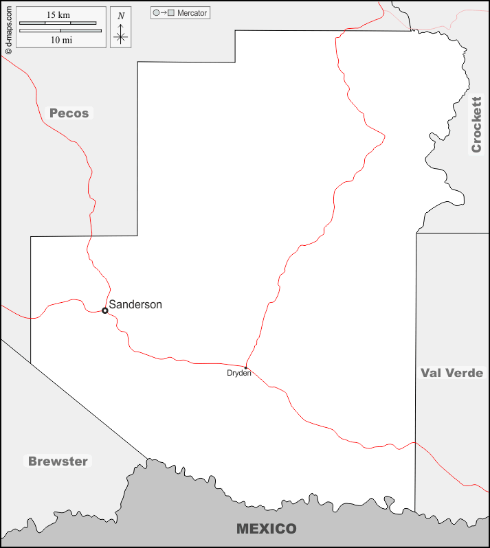 d-maps > संयुक्त राज्य > टेक्सास > टेरेल काउंटी > सीमाओं, मुख्य शहरों, सड़कों, नाम