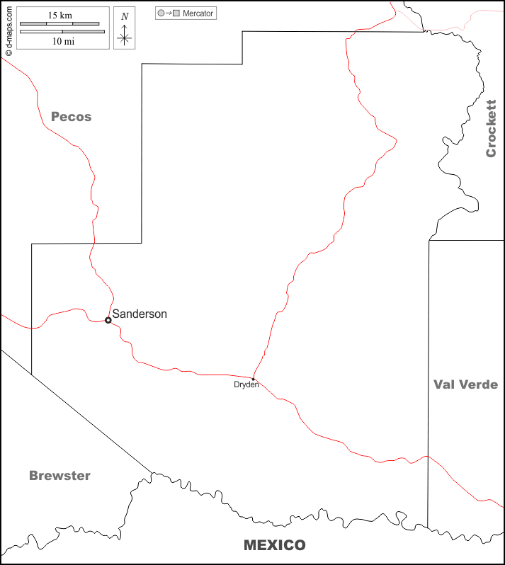 d-maps > संयुक्त राज्य > टेक्सास > टेरेल काउंटी > सीमाओं, मुख्य शहरों, सड़कों, नाम, सफेद
