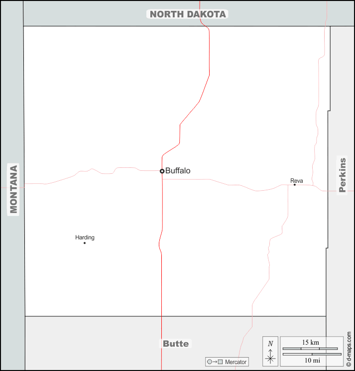 d-maps > संयुक्त राज्य > साउथ डकोटा > हार्डिंग काउंटी > सीमाओं, मुख्य शहरों, सड़कों, नाम