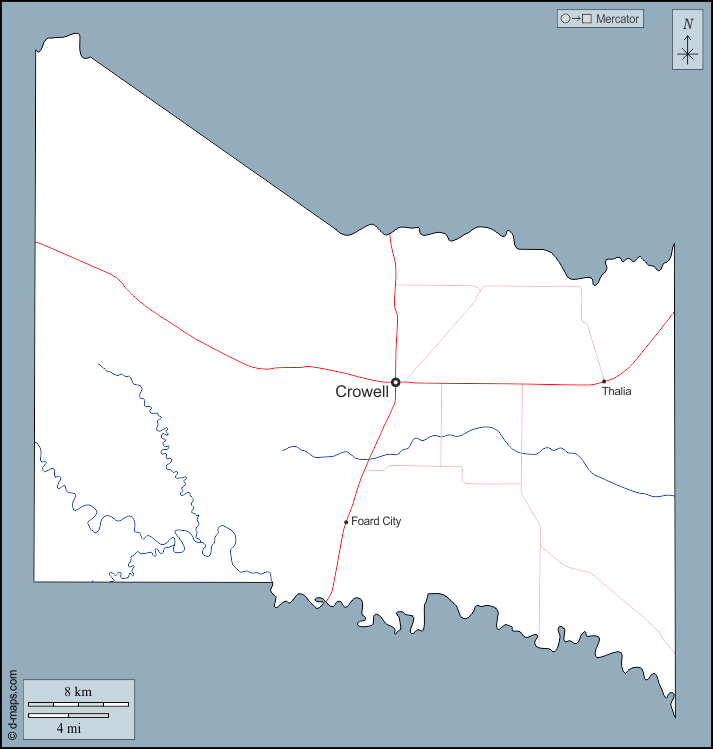 d-maps > संयुक्त राज्य > टेक्सास > फोर्ड काउंटी > बाह्यरेखा, जल-सर्वेक्षण, मुख्य शहरों, सड़कों, नाम