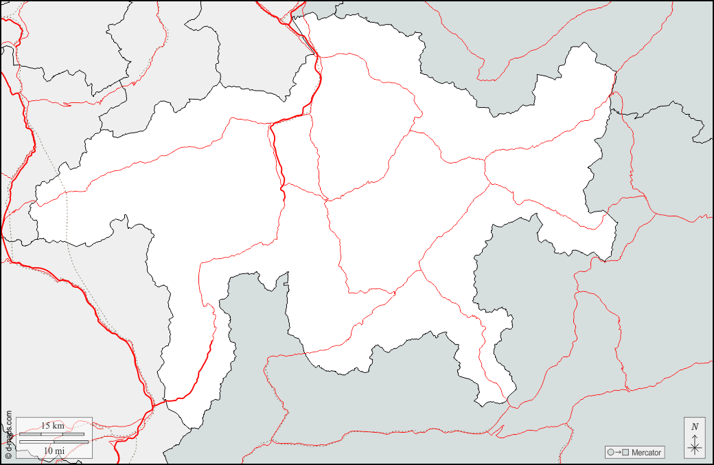 d-maps > यूरोप > स्विट्ज़रलैंड > ग्राउबुन्डन कैन्टन > सीमाओं, सड़कों