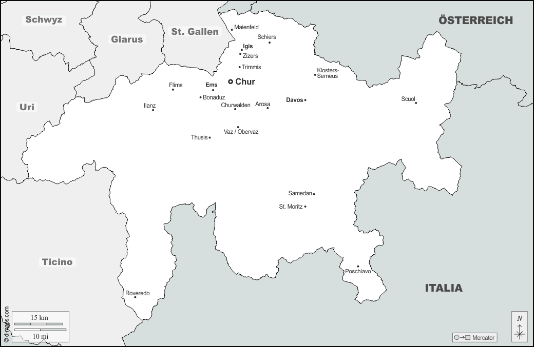 d-maps > यूरोप > स्विट्ज़रलैंड > ग्राउबुन्डन कैन्टन > सीमाओं, मुख्य शहरों, नाम