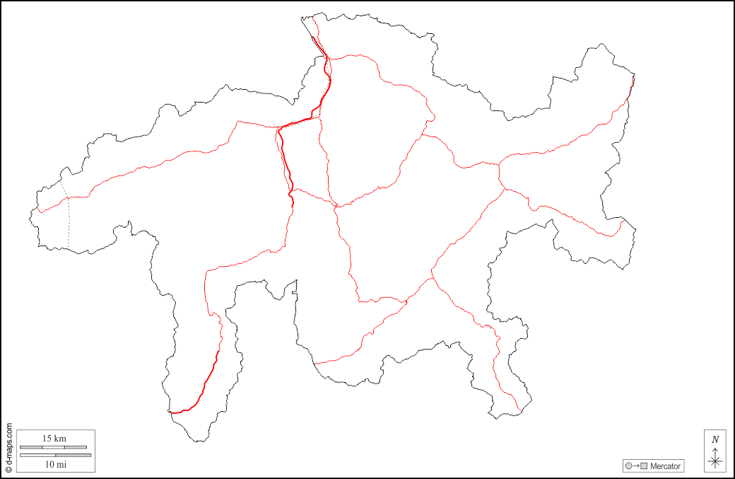 d-maps > यूरोप > स्विट्ज़रलैंड > ग्राउबुन्डन कैन्टन > बाह्यरेखा, सड़कों, सफेद