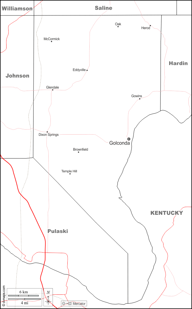 d-maps > संयुक्त राज्य > इलिनॉय > पोप काउंटी > सीमाओं, मुख्य शहरों, सड़कों, नाम, सफेद