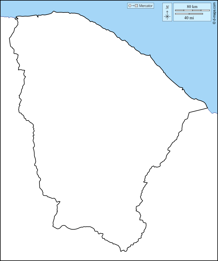 d-maps > महाअमेरिका > ब्राज़ील > सेअरा राज्य > तटों, सीमा