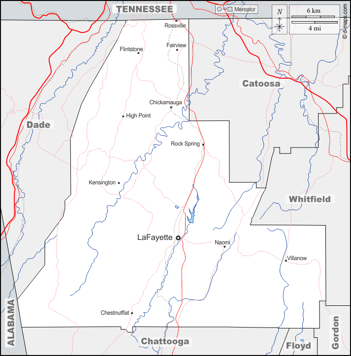 d-maps > संयुक्त राज्य > जॉर्जिया > वॉकर काउंटी > सीमाओं, जल-सर्वेक्षण, मुख्य शहरों, सड़कों, नाम
