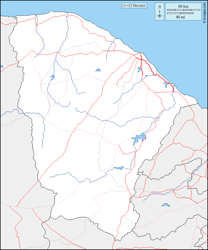 d-maps > महाअमेरिका > ब्राज़ील > सेअरा राज्य > सीमाओं, जल-सर्वेक्षण, सड़कों