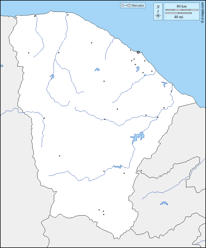 d-maps > महाअमेरिका > ब्राज़ील > सेअरा राज्य > सीमाओं, जल-सर्वेक्षण, मुख्य शहरों