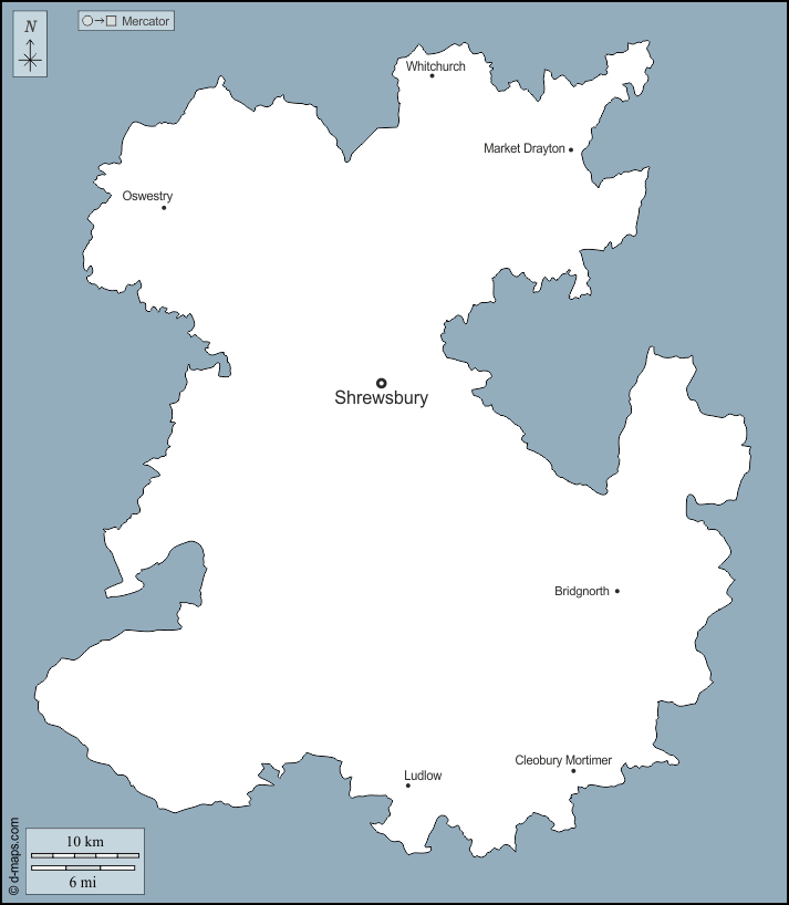 d-maps > यूरोप > युनाइटेड किंगडम > श्रॉपशायर > बाह्यरेखा, मुख्य शहरों, नाम