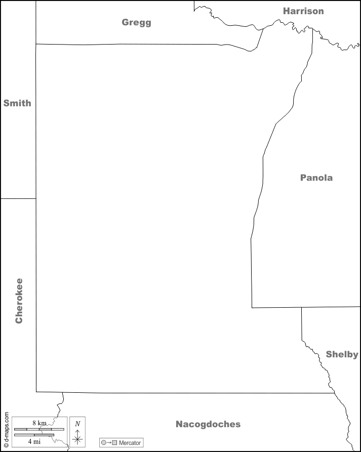 d-maps > संयुक्त राज्य > टेक्सास > रस्क काउंटी > सीमाओं, नाम, सफेद