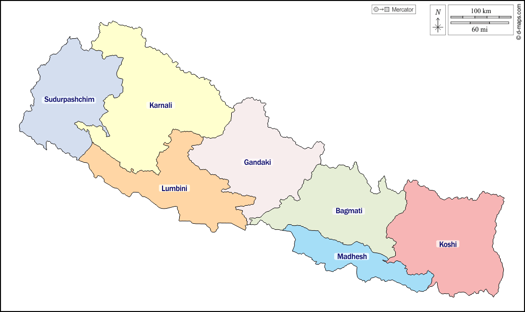 d-maps > एशिया > नेपाल > बाह्यरेखा, प्रांतों, नाम, रंग, सफेद
