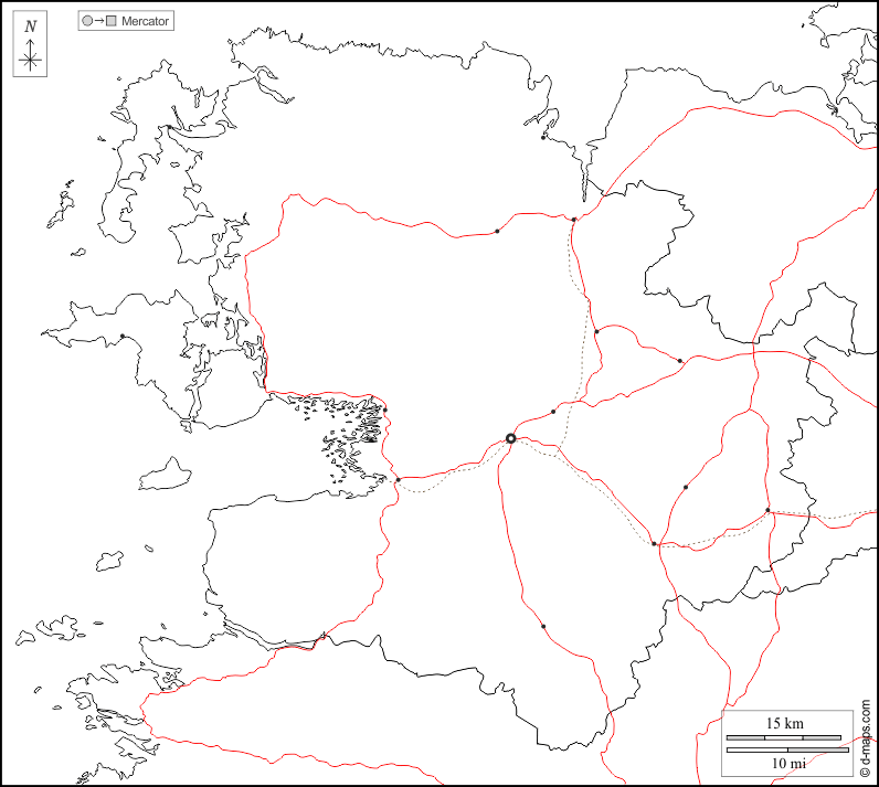 d-maps > यूरोप > आयरलैण्ड गणतंत्र > मेयो > सीमाओं, मुख्य शहरों, सड़कों, सफेद