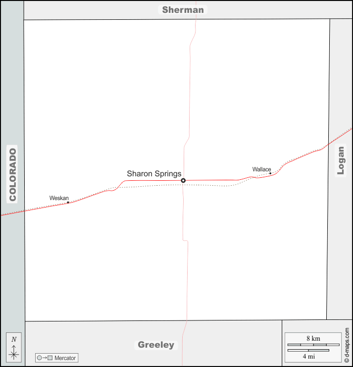 d-maps > संयुक्त राज्य > कैनसस > वालेस काउंटी > सीमाओं, मुख्य शहरों, सड़कों, नाम