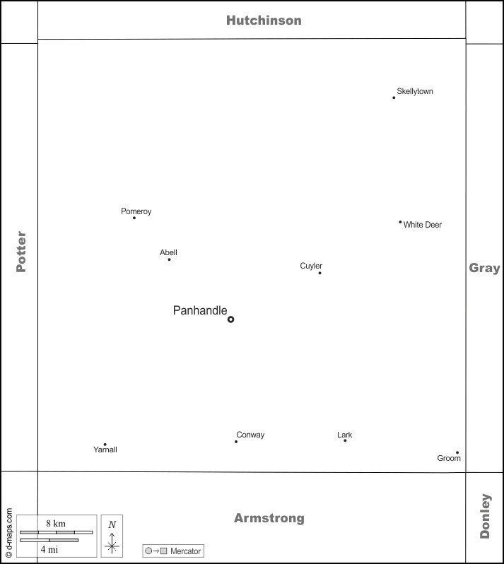 d-maps > संयुक्त राज्य > टेक्सास > कार्सन काउंटी > सीमाओं, मुख्य शहरों, नाम, सफेद