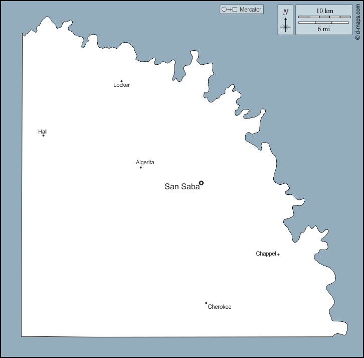 d-maps > संयुक्त राज्य > टेक्सास > सैन सबा काउंटी > बाह्यरेखा, मुख्य शहरों, नाम