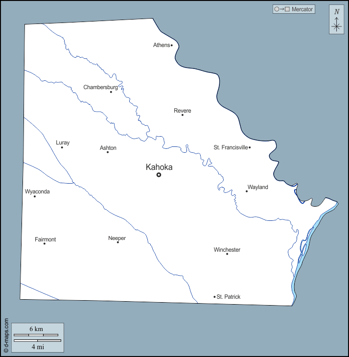 d-maps > संयुक्त राज्य > मिज़ूरी > क्लार्क काउंटी > बाह्यरेखा, जल-सर्वेक्षण, मुख्य शहरों, नाम