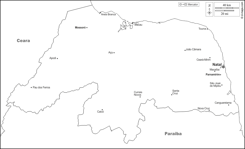 d-maps > महाअमेरिका > ब्राज़ील > रियो ग्रांडे डो नॉर्टे राज्य > सीमाओं, मुख्य शहरों, नाम, सफेद