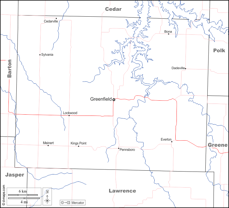 d-maps > संयुक्त राज्य > मिज़ूरी > डेड काउंटी > सीमाओं, जल-सर्वेक्षण, मुख्य शहरों, सड़कों, नाम, सफेद