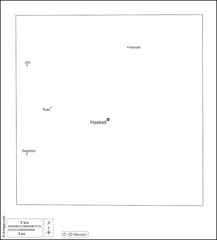 d-maps > संयुक्त राज्य > टेक्सास > हास्केल काउंटी > बाह्यरेखा, मुख्य शहरों, नाम, सफेद
