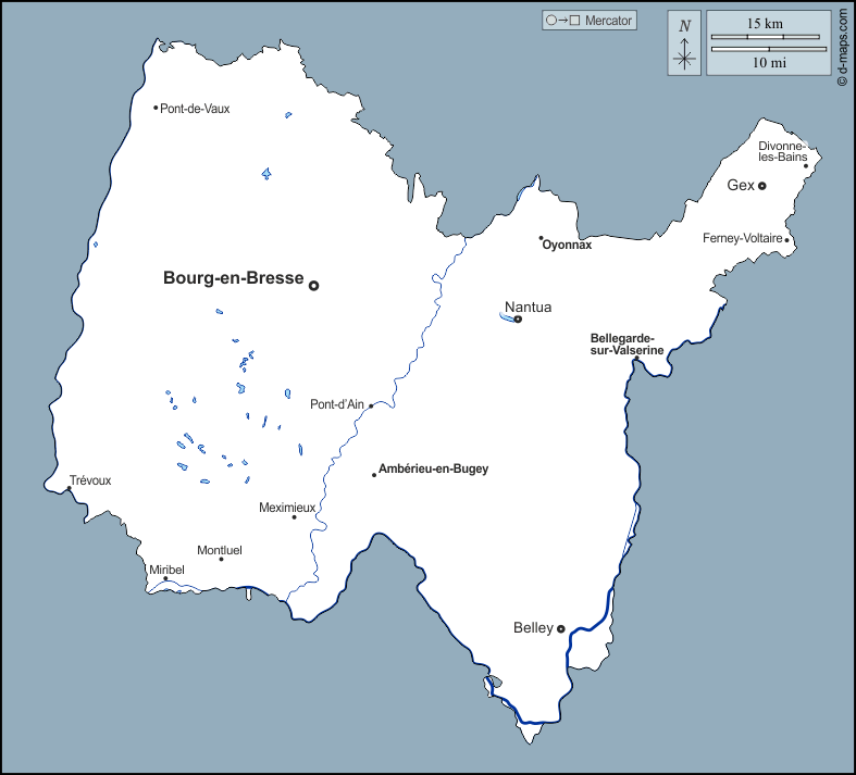 d-maps > यूरोप > फ़्रान्स > ऐन > बाह्यरेखा, जल-सर्वेक्षण, मुख्य शहरों, नाम