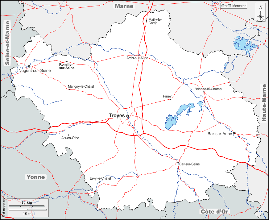 d-maps > यूरोप > फ़्रान्स > औबे > सीमाओं, जल-सर्वेक्षण, मुख्य शहरों, सड़कों, नाम