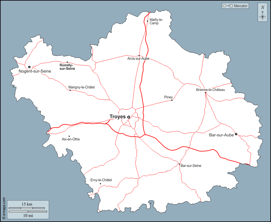 d-maps > यूरोप > फ़्रान्स > औबे > बाह्यरेखा, मुख्य शहरों, सड़कों, नाम