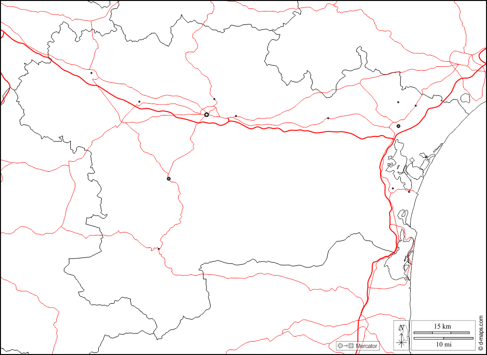 d-maps > यूरोप > फ़्रान्स > औड > सीमाओं, मुख्य शहरों, सड़कों, सफेद