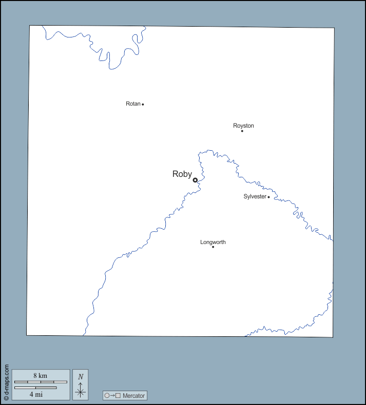 d-maps > संयुक्त राज्य > टेक्सास > फिशर काउंटी > बाह्यरेखा, जल-सर्वेक्षण, मुख्य शहरों, नाम