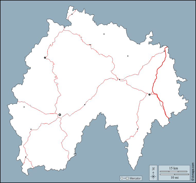 d-maps > यूरोप > फ़्रान्स > कंटल > बाह्यरेखा, मुख्य शहरों, सड़कों