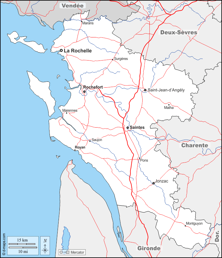 d-maps > यूरोप > फ़्रान्स > चार्नेटे-समुद्री > सीमाओं, जल-सर्वेक्षण, मुख्य शहरों, सड़कों, नाम