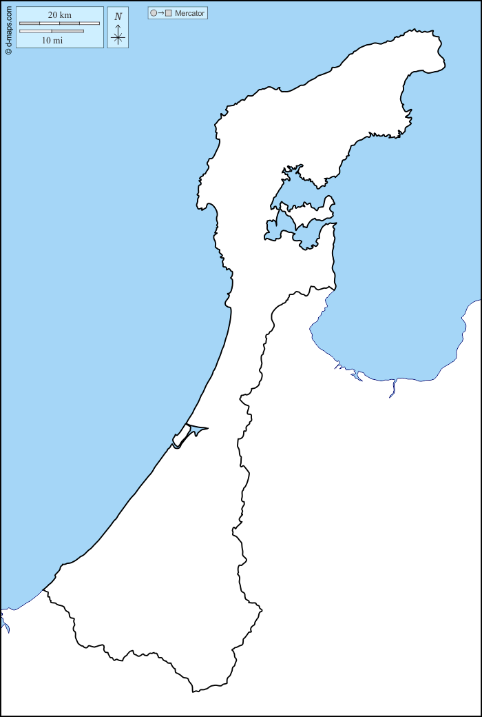 d-maps > एशिया > जापान > इशिकावा > तटों, सीमा