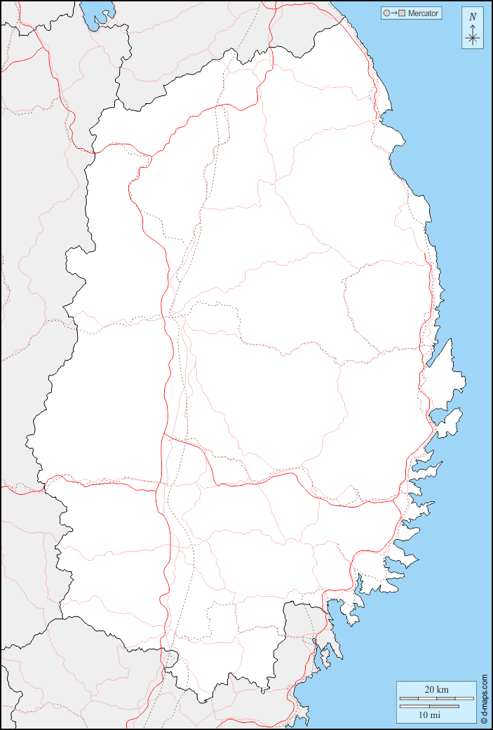 d-maps > एशिया > जापान > इवाते प्रीफ़ेक्चर > सीमाओं, सड़कों