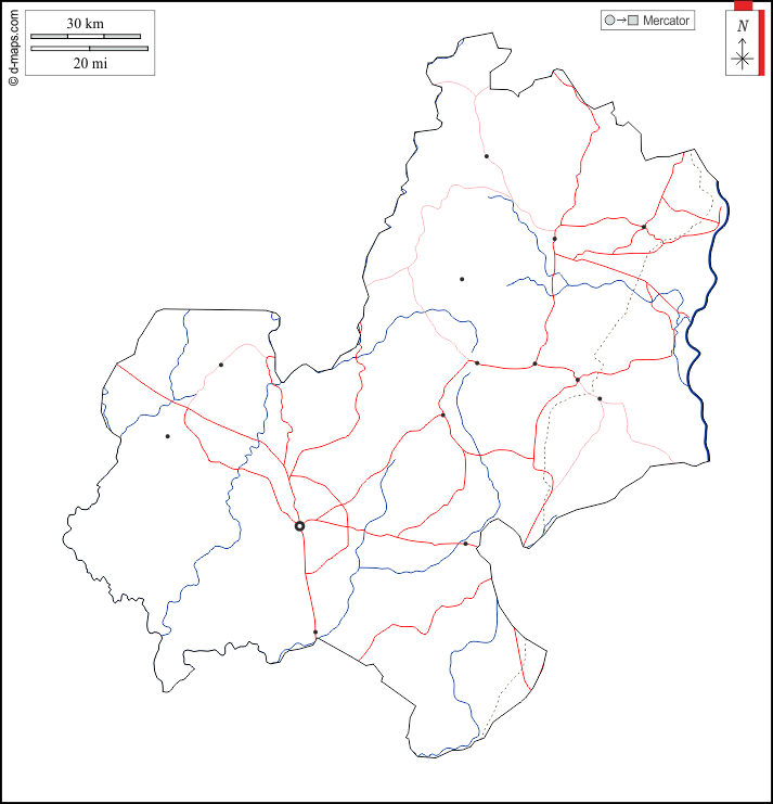 d-maps > अफ्रीका > नाइजीरिया > एडो राज्य > बाह्यरेखा, जल-सर्वेक्षण, मुख्य शहरों, सड़कों, सफेद