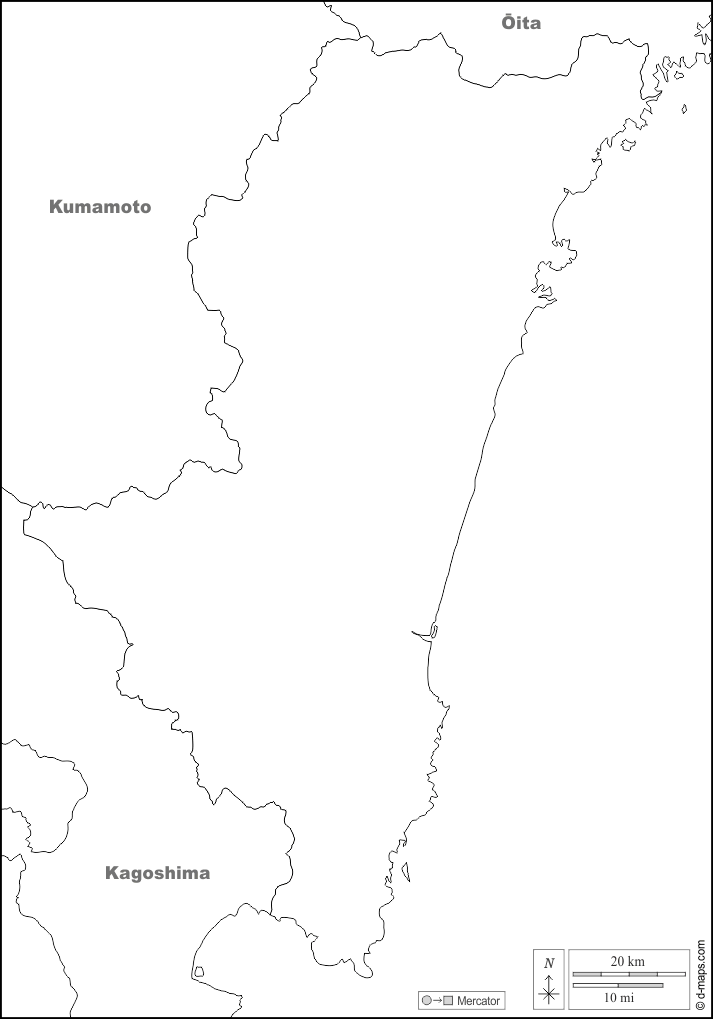 d-maps > एशिया > जापान > मियाज़ाकी > सीमाओं, नाम, सफेद