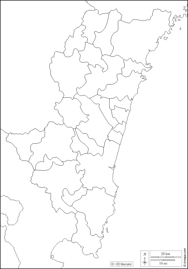 d-maps > एशिया > जापान > मियाज़ाकी > सीमाओं, नगर पालिकाओं, सफेद