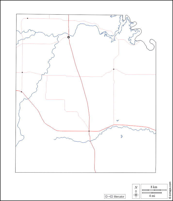 d-maps > संयुक्त राज्य > टेक्सास > कॉनोको काउंटी > बाह्यरेखा, जल-सर्वेक्षण, मुख्य शहरों, सड़कों, सफेद