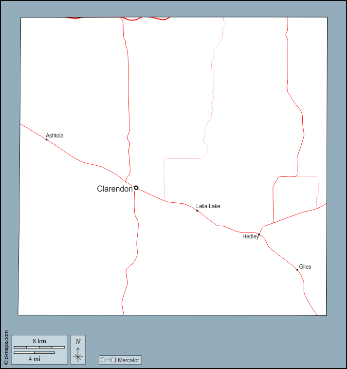 d-maps > संयुक्त राज्य > टेक्सास > डोनली काउंटी > बाह्यरेखा, मुख्य शहरों, सड़कों, नाम