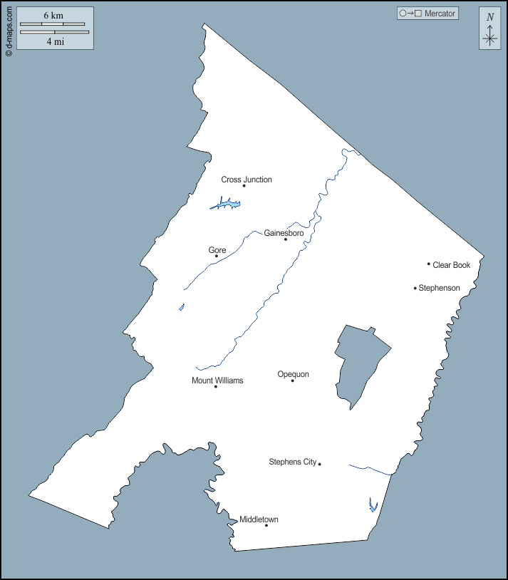 d-maps > संयुक्त राज्य > वर्जीनिया > फ्रेडरिक काउंटी > बाह्यरेखा, जल-सर्वेक्षण, मुख्य शहरों, नाम