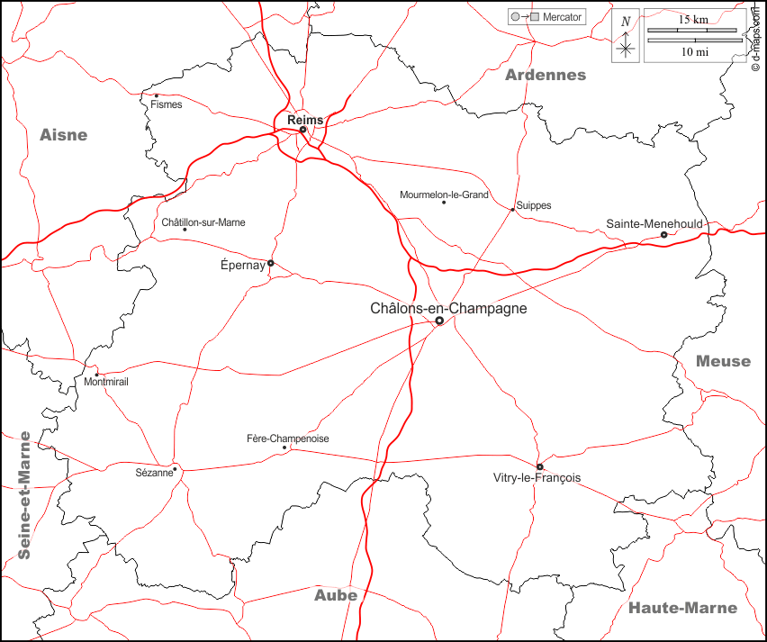 d-maps > यूरोप > फ़्रान्स > मार्ने > सीमाओं, मुख्य शहरों, सड़कों, नाम, सफेद