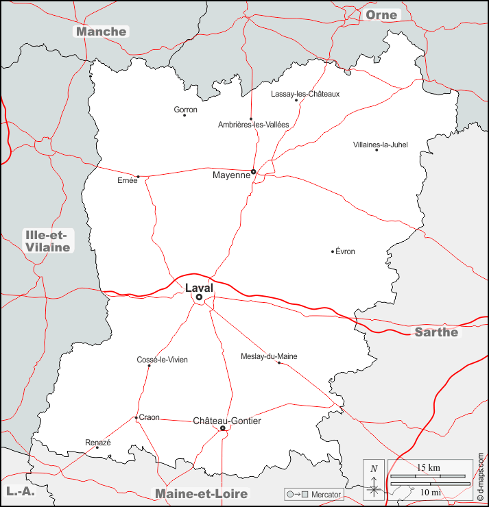d-maps > यूरोप > फ़्रान्स > मायेन > सीमाओं, मुख्य शहरों, सड़कों, नाम