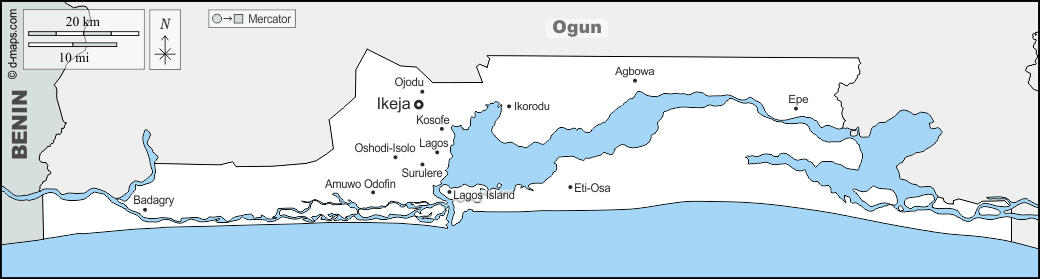 d-maps > अफ्रीका > नाइजीरिया > लेगोस > सीमाओं, मुख्य शहरों, नाम