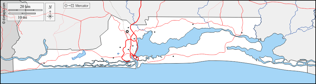d-maps > अफ्रीका > नाइजीरिया > लेगोस > सीमाओं, जल-सर्वेक्षण, मुख्य शहरों, सड़कों