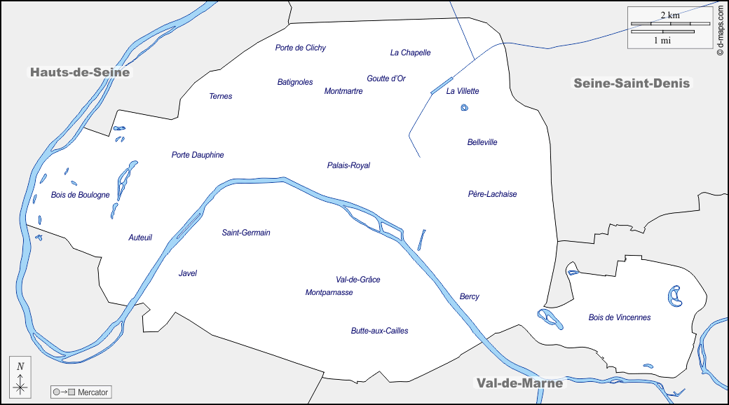 d-maps > यूरोप > फ़्रान्स > पेरिस > सीमाओं, जल-सर्वेक्षण, पड़ोस, नाम