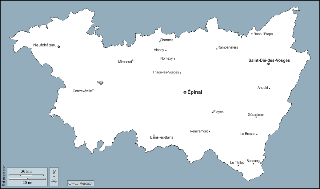 d-maps > यूरोप > फ़्रान्स > वोसगेस > बाह्यरेखा, मुख्य शहरों, नाम